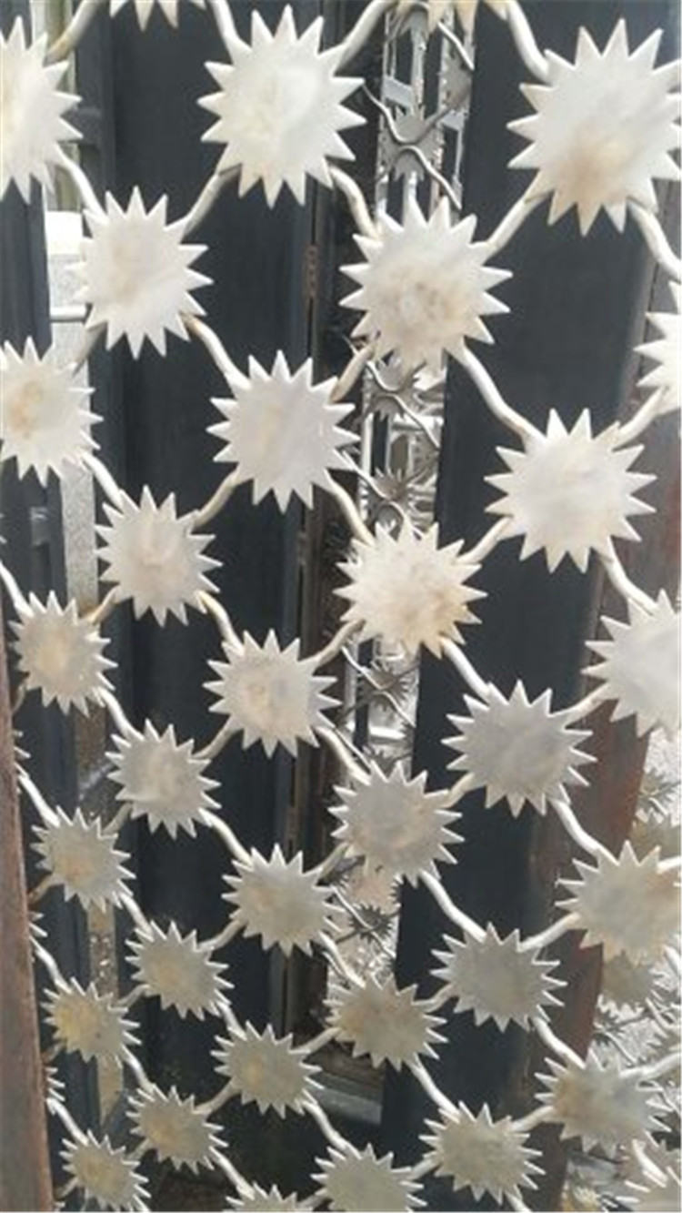 1.監(jiān)獄防攀爬護欄網(wǎng)的太陽花刺片由Q235低碳鋼板沖壓而成,其直徑大于7.5cm,刺片厚度為2.0mm。