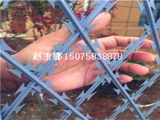 刀刺隔離網(wǎng)主要是由熱鍍鋅鋼板或不銹鋼薄板沖壓而成的,它擁有尖銳的刀片,高張力鍍鋅鋼絲或者不銹鋼絲做芯線組合而成的產(chǎn)品。由于刺網(wǎng)的形狀很特別,而且每個(gè)角度都有尖狀刀片,因而能達(dá)到極好的防御保護(hù)效果。產(chǎn)品具有結(jié)構(gòu)新穎、堅(jiān)固緊密、網(wǎng)面平整、網(wǎng)孔均勻、刀鋒銳利、防攀爬、抗腐蝕性強(qiáng)等特點(diǎn)。建設(shè)于監(jiān)獄的內(nèi)外墻地面及高墻之上,網(wǎng)墻內(nèi)側(cè)或頂部加裝蛇腹形刀刺網(wǎng),形成一道高不可攀、難以逾越的隔離障