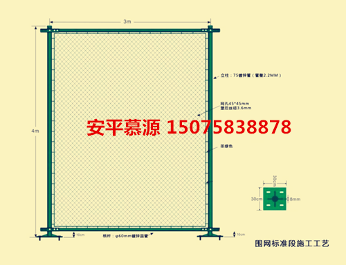規(guī)格:室外籃球場圍網(wǎng)網(wǎng)孔45mmx45mm(±3mm)、內(nèi)徑:2.3mm 外徑:3.6mm(±0.15)