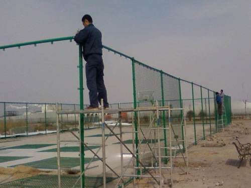①室外籃球場圍網(wǎng)施工工序?yàn)椋旱装骞潭?span lang="EN-US">----網(wǎng)立柱鏍栓安裝----頂、底橫桿鏍栓安裝固定---掛網(wǎng)----網(wǎng)門安裝。