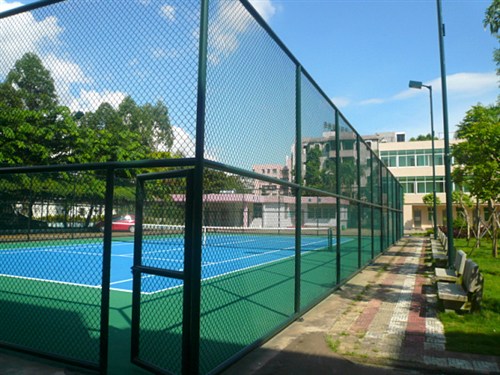 ?、芄椿ǜ綦x網(wǎng)系列,此產(chǎn)品結(jié)構(gòu)獨特,預(yù)彎穿接而成,具有很好的抗沖擊力,可作為學(xué)校隔離網(wǎng)的體育場用。